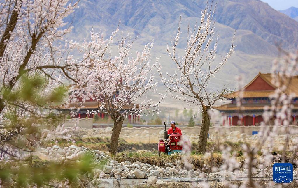 2022年4月10日,在甘肃酒泉肃州区金佛寺镇,农民驾驶农机翻耕土地。新华社发(侯崇慧 摄)