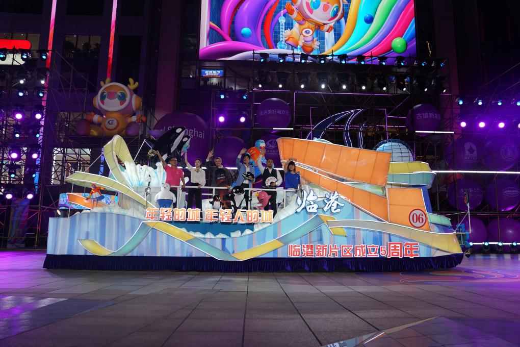 9月14日,“诗意赴临港·年轻新片区”巡游花车亮相上海旅游节开幕式。新华社发(陈浩明摄)