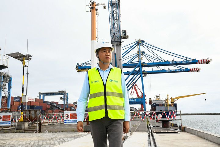 施智辉2013年加入中国港湾工程有限责任公司,亲身参与并见证了项目所在地从小渔村到中部非洲大港的历史性变化。新中国成立75周年之际,克里比深水港项目二期建设正进入冲刺阶段。在深水港和疏港高速公路带动下,港口后方的工业园区也在拔地而起。