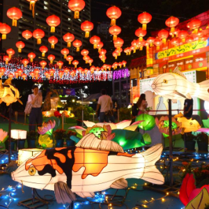 2024年9月12日,观众在彩灯会上游览。当日,以“国风·港味”为主题的中秋彩灯会在香港维多利亚公园亮灯,迎接中秋节和国庆节。新华社记者 陈铎 摄