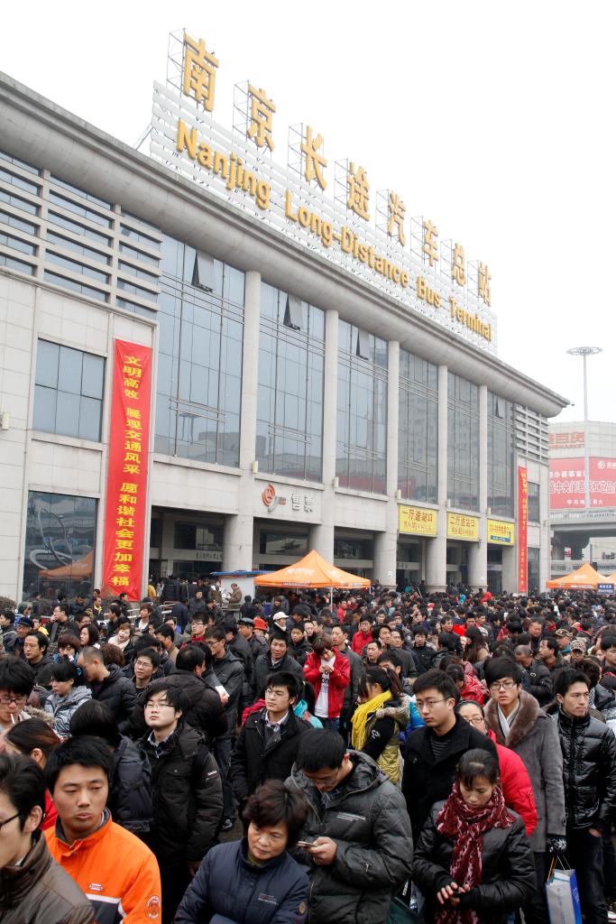 2012年1月14日,旅客在南京长途汽车总站等候进站上车。(新华社照片)