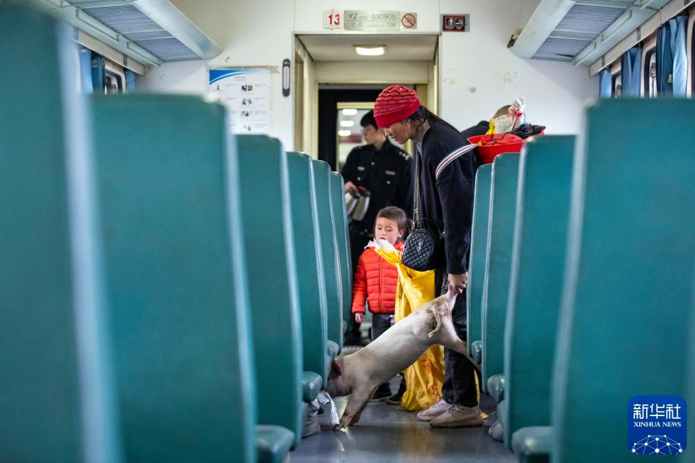 2021年4月11日,在5633次列车上,乘客带着的小猪从袋子里爬了出来。在成昆铁路上,“慢火车”5633/5634次列车,沿途停靠26个站,票价几十年不变,已成为沿途百姓外出务工、求医就学、逢会赶集等主要交通工具。