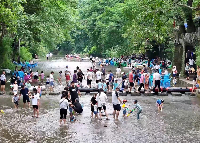图为游客在偏岩古镇体验亲水游。(北碚区融媒体中心供图)