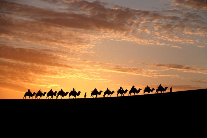 游客在甘肃省敦煌市鸣沙山月牙泉景区游览(2024年10月4日摄)。新华社发(张晓亮摄)