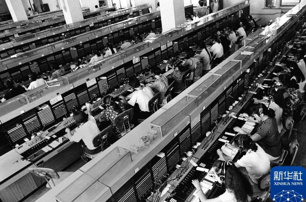 1986年5月,在河南郑州邮电局人工电话交换机工作大厅内,几十名接线员在工作。