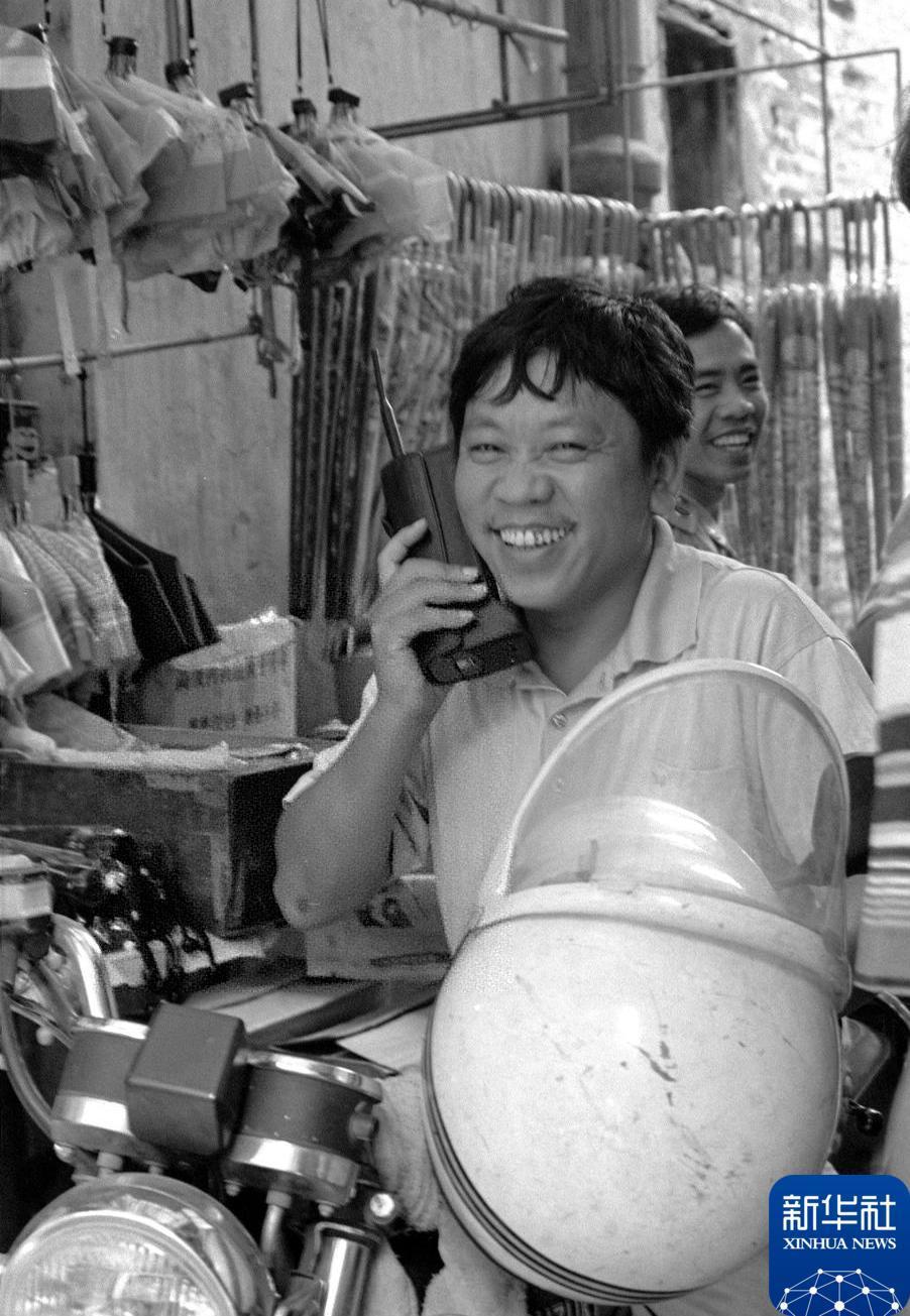 1994年1月,广州一名商贩用“大哥大”打电话。