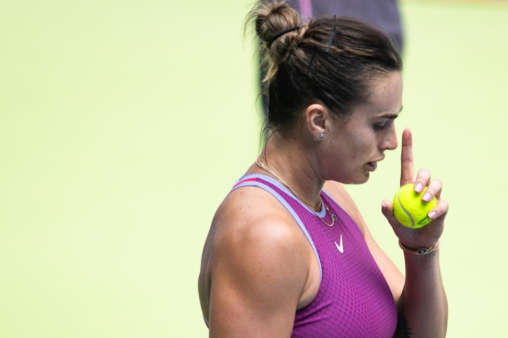 10月9日,萨巴伦卡在2024年WTA武汉网球公开赛女单第二轮比赛中。新华社记者 肖艺九 摄