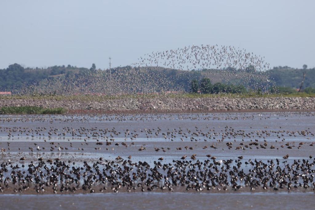 鸭绿江口候鸟栖息地的壮观“鸟浪”。(鸭绿江口湿地保护中心供图)