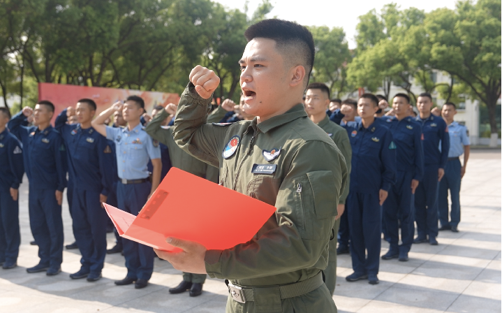 “空军红色地标巡礼”第十站活动现场,官兵代表集体宣誓。韩启扬 摄