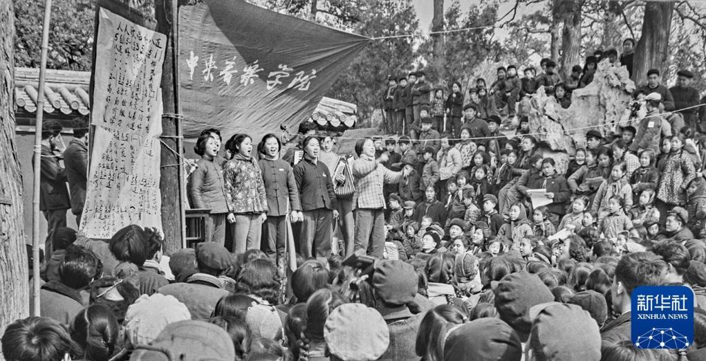 1964年3月8日,中央音乐学院师生在北京北海公园教唱歌曲。新华社记者 薛铁军 摄