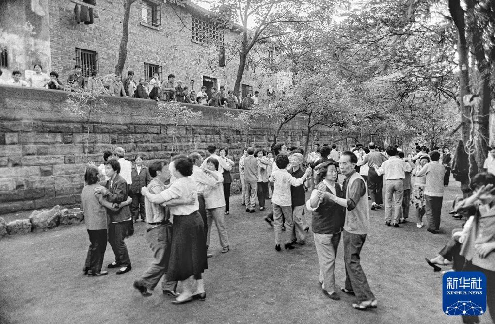 1991年3月2日,重庆市民在街心公园跳交谊舞。新华社记者 刘前刚 摄