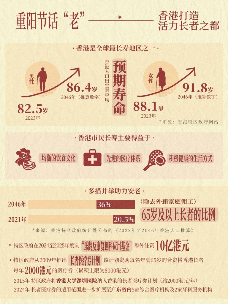 登高、祭祖,敬老、感恩……在全球最长寿地区之一的香港,人们十分重视重阳节。如何照顾好家中老人,如何面对自己逐渐老去,是很多人共同关心的话题。让长者健康且有质量地安享晚年,是香港特区政府和每个香港家庭的共同目标。