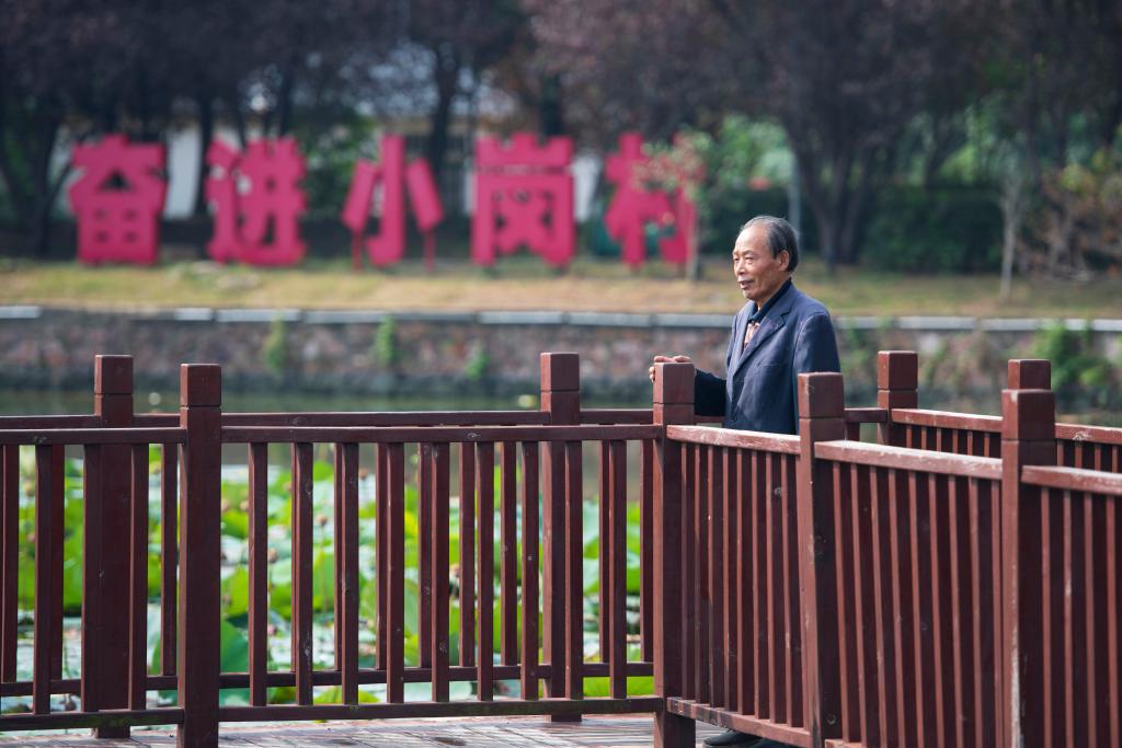 9月27日,严宏昌在小岗村一处荷塘边休闲散步。