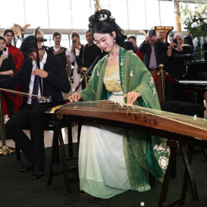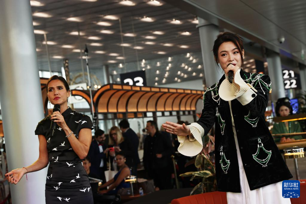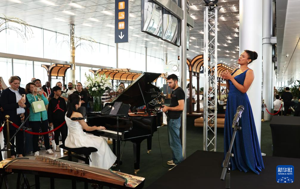 文艺表演环节,法国歌手乔伊丝·乔纳森和越剧演员陈丽君联袂演绎了《凤求凰》,旅法二胡演奏家果敢和留法学生“古筝女孩”彭静旋用中国传统乐器诠释了法国人耳熟能详的《香榭丽舍大街》。演出吸引了来往旅客驻足欣赏。