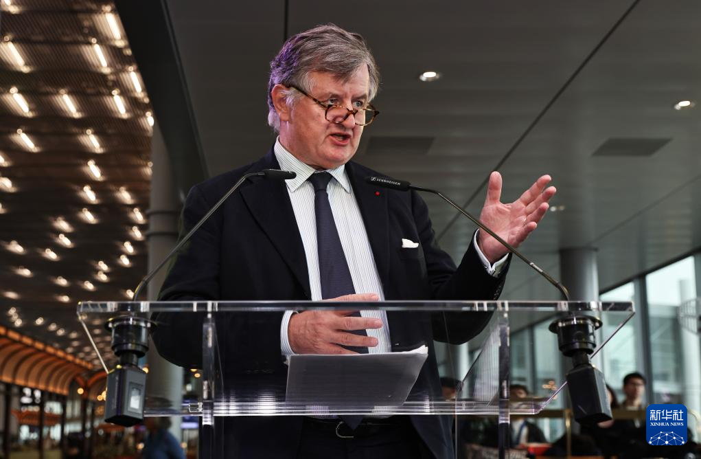 10月10日,在法国巴黎戴高乐机场,巴黎机场管理局负责人奥古斯丁·德罗马内在“中法金秋文化盛宴”活动上致辞。新华社记者 高静 摄