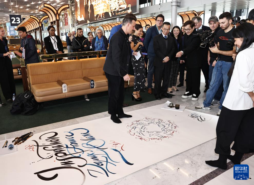 10月10日,在法国巴黎戴高乐机场举行的“中法金秋文化盛宴”活动上,嘉宾观看现场艺术家的展示。新华社记者 高静 摄