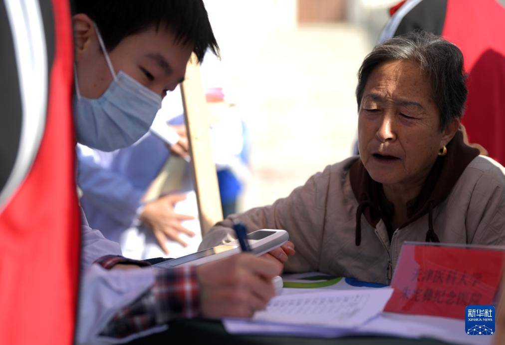 10月11日,天津医科大学朱宪彝纪念医院的医护人员在仪式现场给老人义诊。
