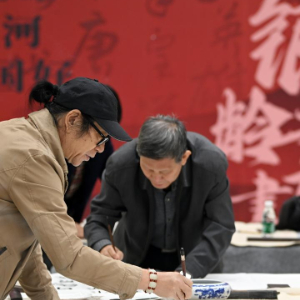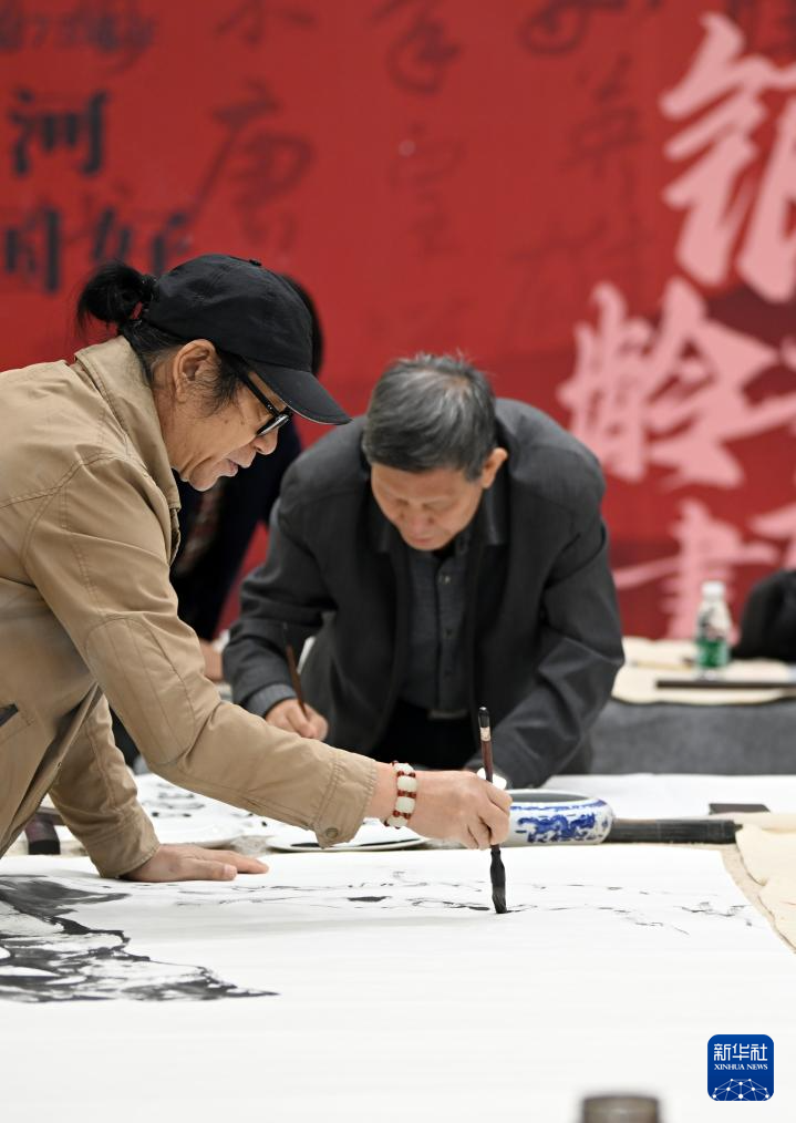 10月11日,老人们在创作书画作品。