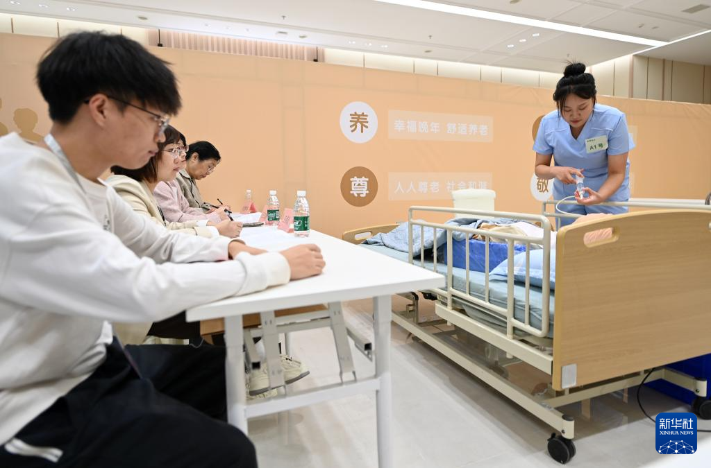 这是仪式现场举办的北辰区养老机构护理员职业技能竞赛(10月11日摄)。