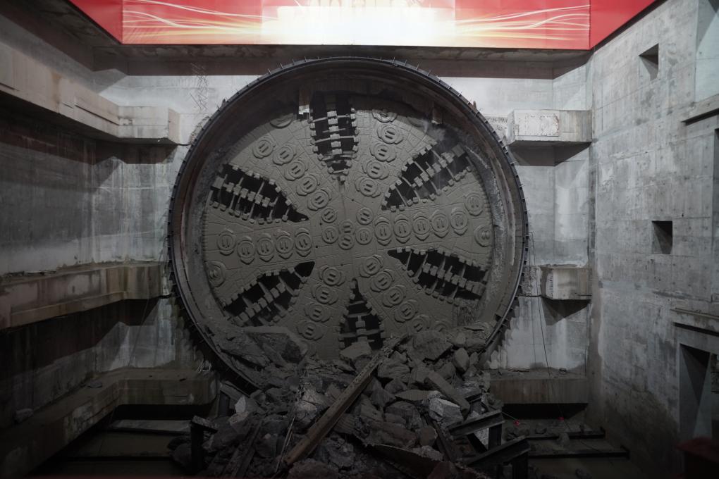 “皖江奋斗号”盾构机刀盘破洞而出,顺利抵达接收井。(中铁十四局供图)