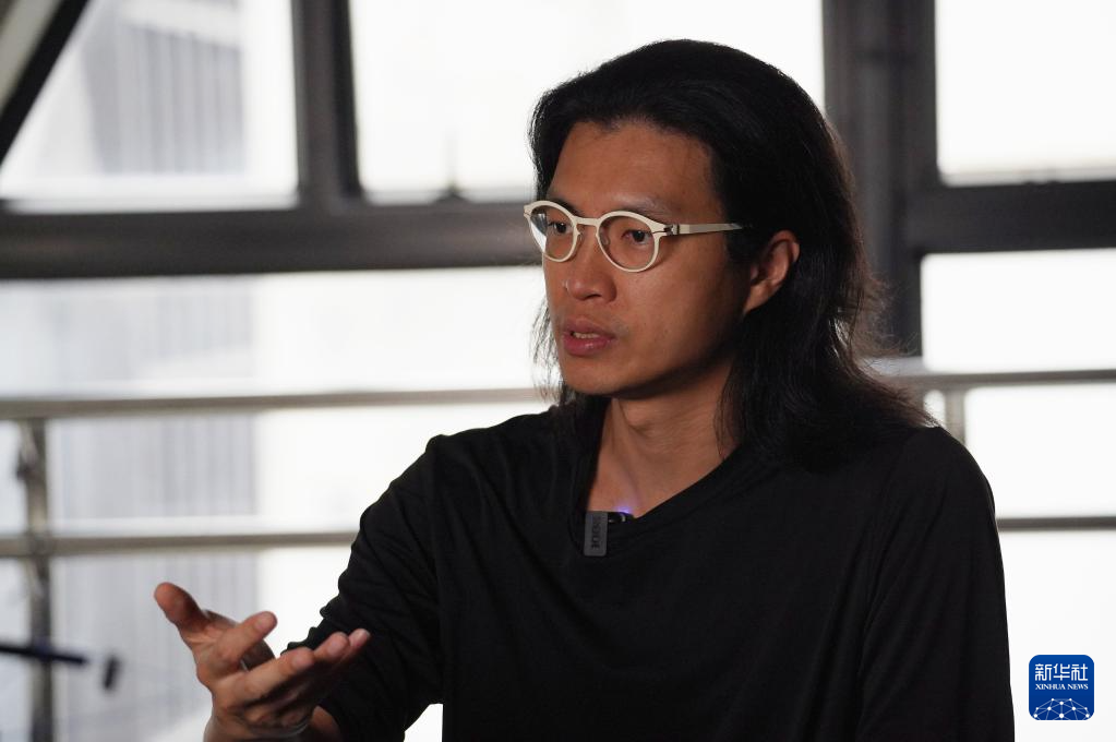 新媒体艺术家张瀚谦在接受记者采访(9月24日摄)。 新华社发(谭佳铭 摄)