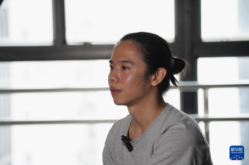 香港舞蹈团首席舞蹈员王志昇在接受记者采访(9月24日摄)。 新华社发(谭佳铭 摄)