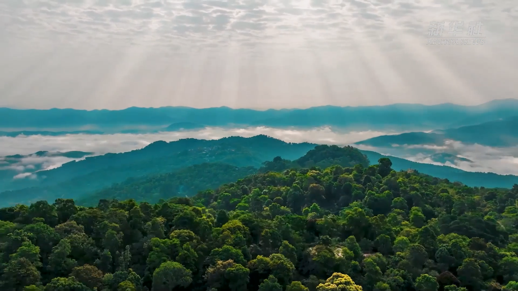 照耀在景迈山连绵起伏的山峦上