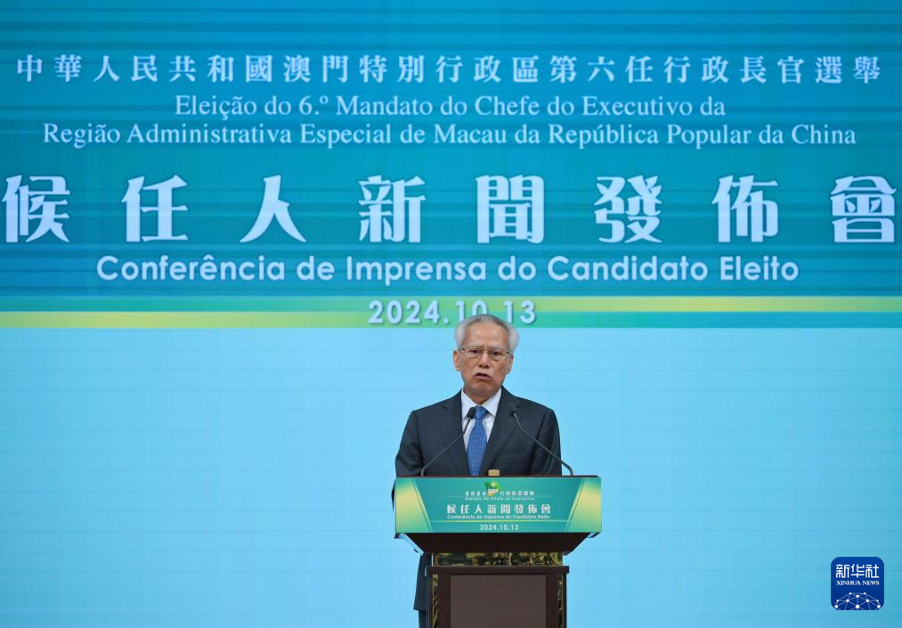 新华社澳门10月13日电(记者刘刚、查文晔、李寒芳)澳门特别行政区第六任行政长官选举13日举行,岑浩辉以394张有效票高票当选成为第六任行政长官候任人。