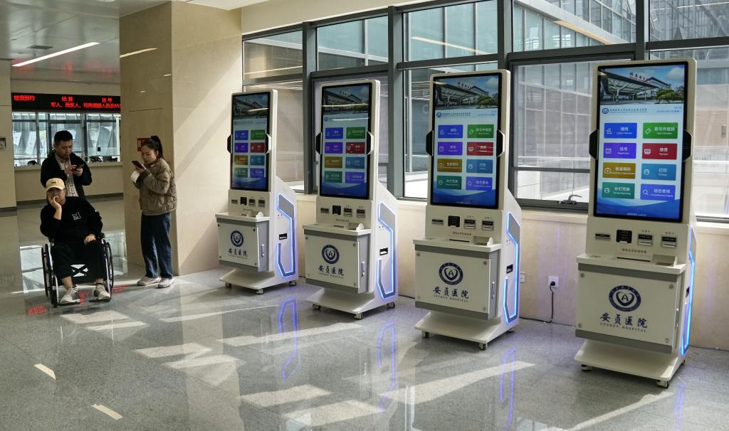 10月14日,北京安贞医院通州院区就诊大厅里配备的一站式缴费等设施。新华社记者 李欣 摄