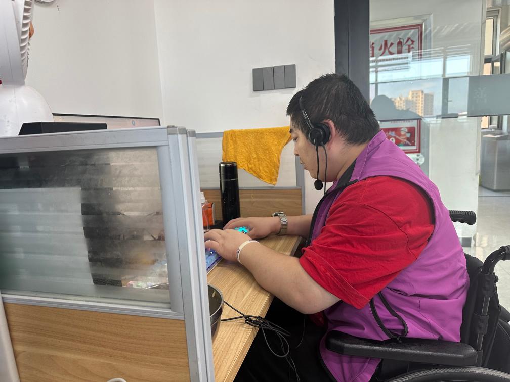 在位于甘肃省张掖市甘州区的残疾人网络培训就业基地,29岁的王鹏操控着轮椅从宿舍出发,穿越宽敞明亮的走廊抵达办公区。打开电脑,戴上耳机,他开始了作为互联网客服忙碌的一天。而几年前,他还难以想象自己作为残疾人能过上如此充实的生活。