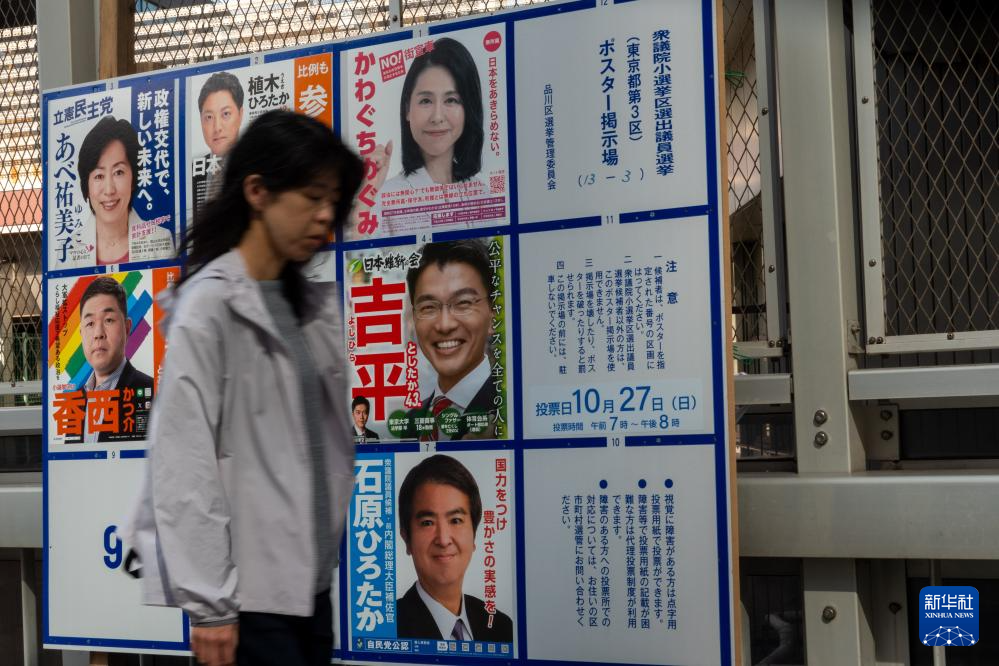 10月15日,行人走过日本东京的一处众议院议员选举公示板。新华社记者 张笑宇 摄