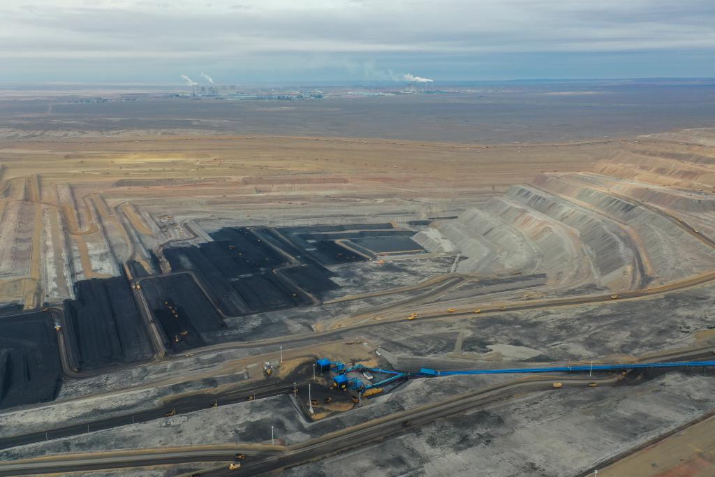 这是9月26日拍摄的国家能源集团新疆准东能源有限责任公司准东露天煤矿作业现场(无人机照片)。新华社记者 丁磊 摄