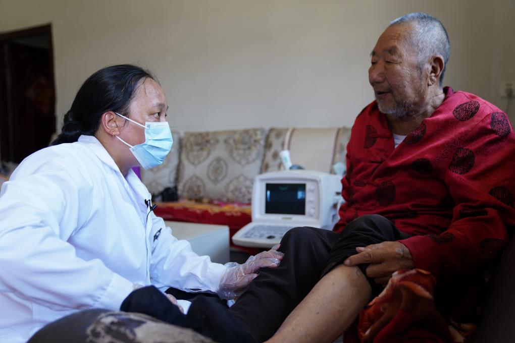 9月20日,四川省普格县花山镇一户村民家中,乃古莫子作为老人检查身体,询问病情。