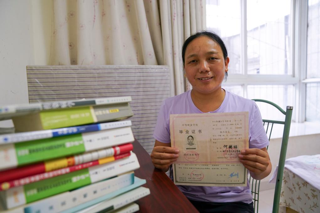 9月20日,在位于四川省普格县的家中,乃古莫子作展示自己的中专和本科毕业证书。