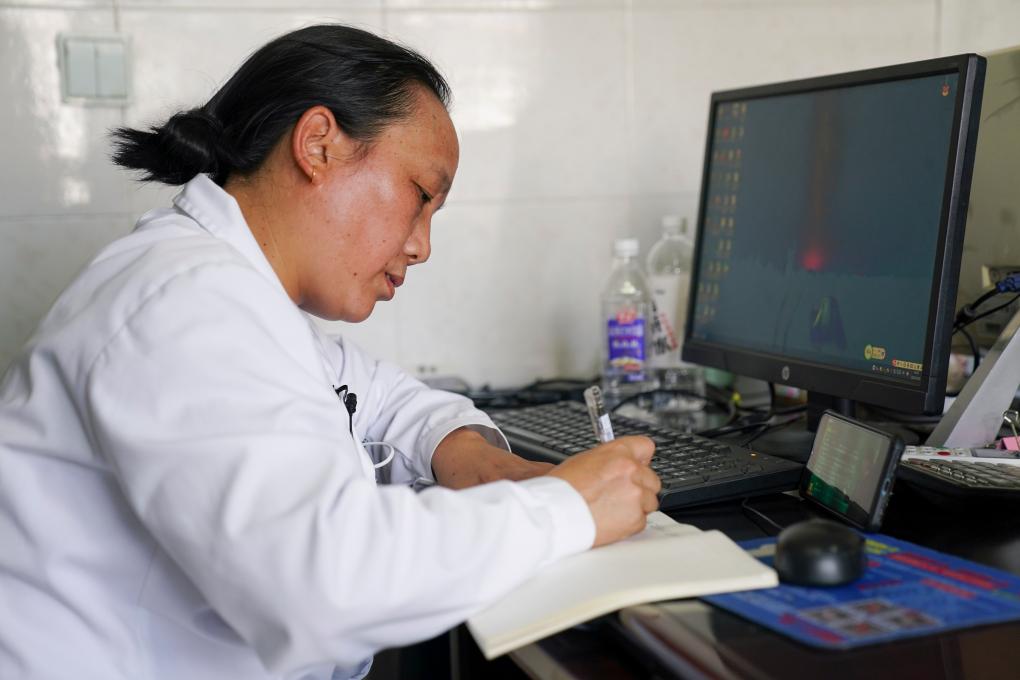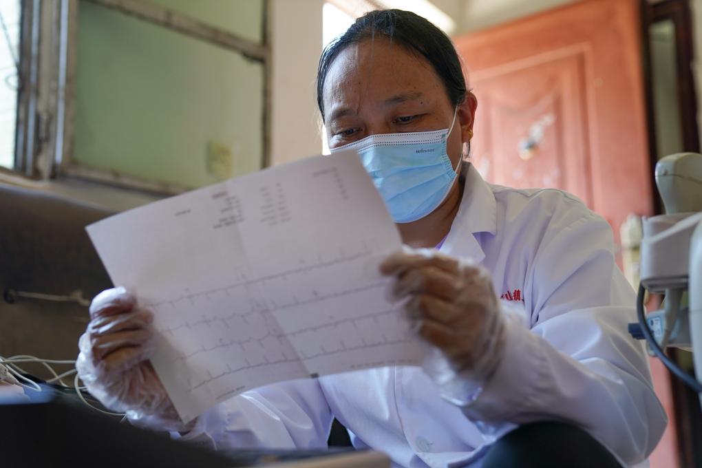 9月20日,四川省普格县花山镇一户村民家中,乃古莫子作为老人做心电图检查后查看报告。