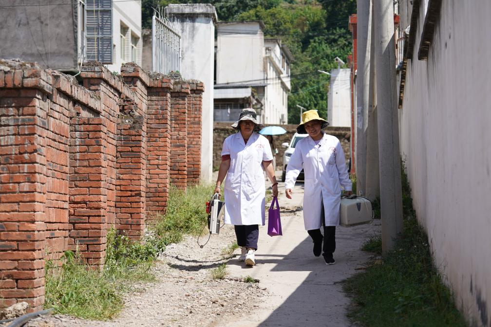 9月20日,四川省普格县花山镇,乃古莫子作(右)和同事刘迁琴带着医疗设备上门为留守老人体检。