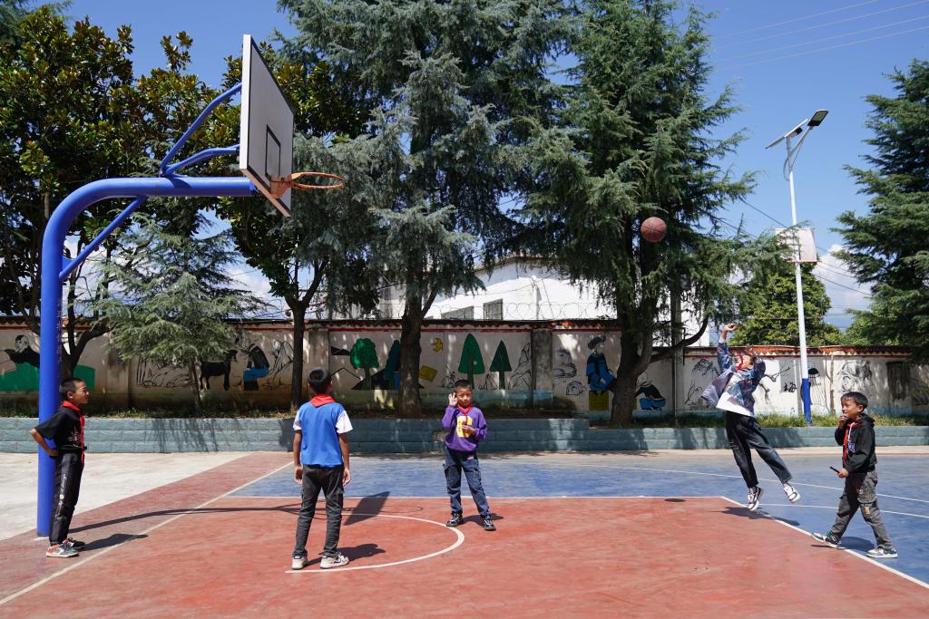 9月20日,四川省普格县花山镇东乡小学学生在打篮球。