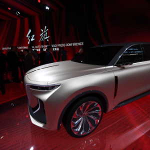 这是2019年在德国法兰克福国际车展首个媒体开放日期间拍摄的一汽红旗E115型新能源豪华车型概念车。新华社记者逯阳摄