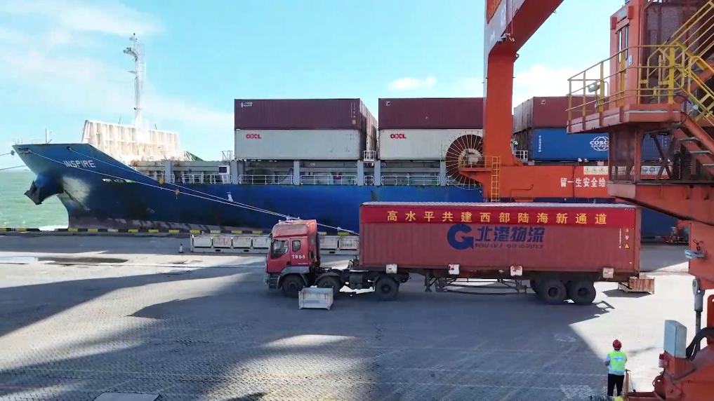 西部陆海新通道位于中国西部地区腹地,北接丝绸之路经济带,南连21世纪海上丝绸之路。车来船往的广西北部湾钦州港是“一带一路”有机衔接的重要节点。在这里,海铁联运无缝衔接。