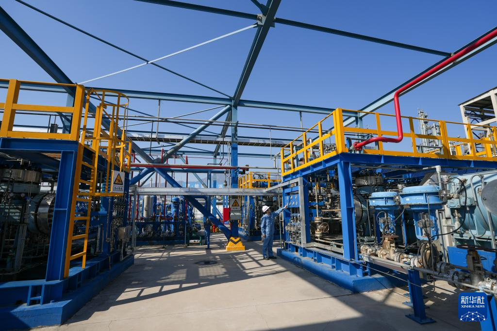 10月15日,在中国石化燕山石化公司,一名工作人员在氢气新能源装置旁巡视。新华社记者 鞠焕宗 摄