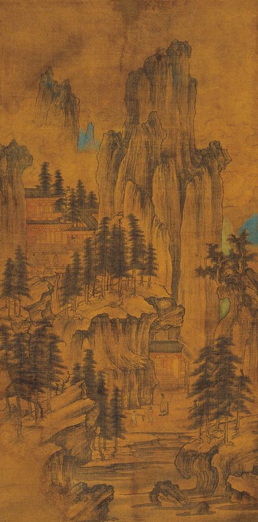 《山弈候约图》为辽代早期作品,彼时,中原的山水画已登上了成熟的巅峰。可以看出,《山弈候约图》中山水画面貌接近于当时的中原山水画风,唯其笔墨尚显朴拙。
