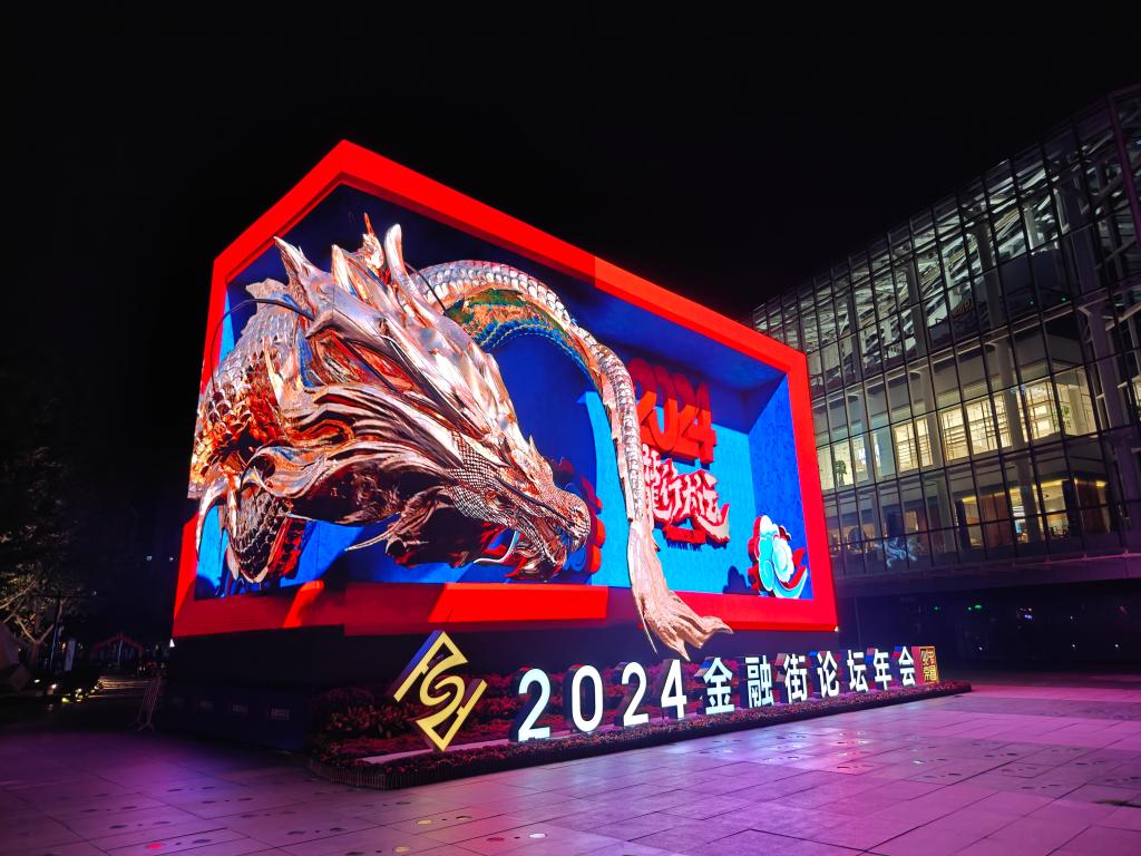 2024金融街论坛年会的会场外设置展示大屏。新华社发