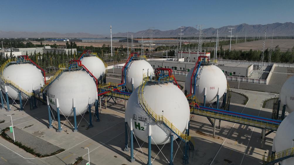 这是2023年6月30日拍摄的中国石化新疆库车绿氢示范项目制氢厂储氢罐区(无人机照片)。新华社记者顾煜摄