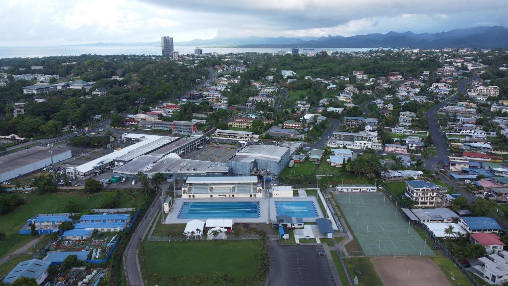这是1月12日在斐济苏瓦航拍的中方援建翻修的室外游泳池。新华社发(桑钦龙摄)