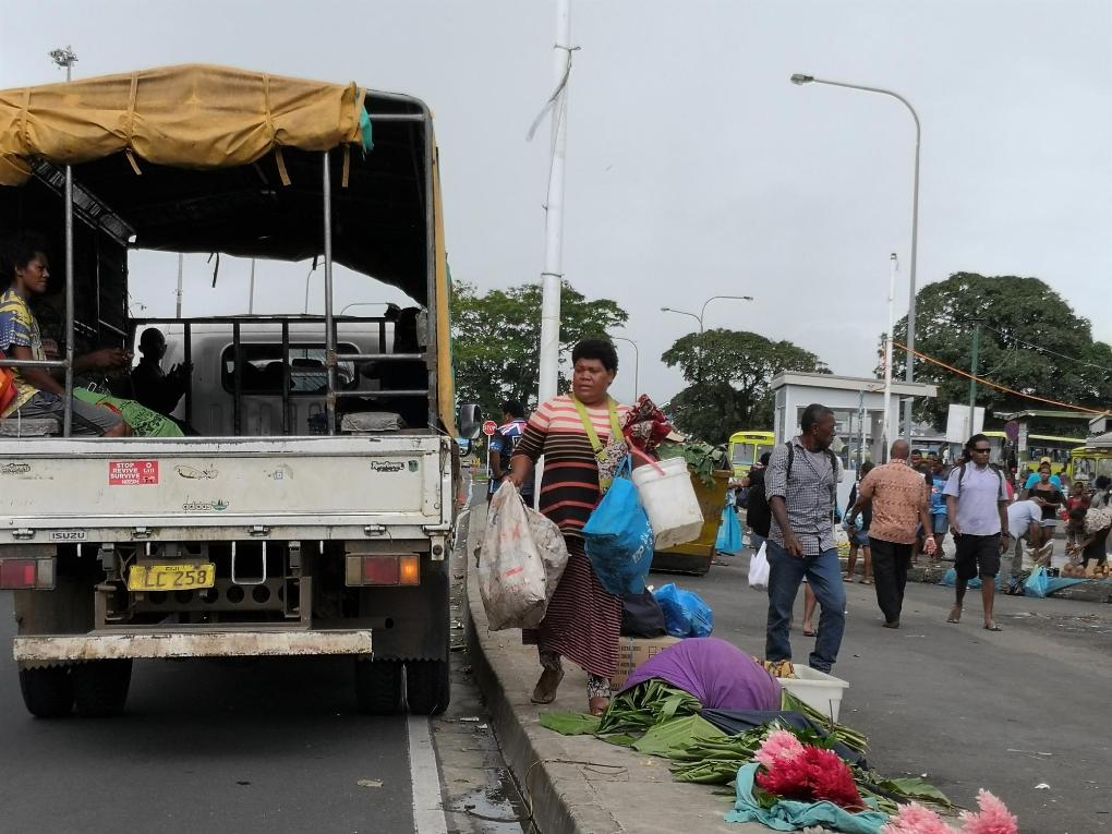 2021年1月30日,一名女子(中)在斐济苏瓦的市场采购物资。新华社记者张永兴摄