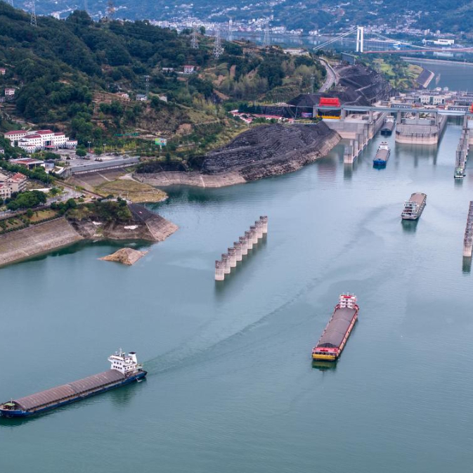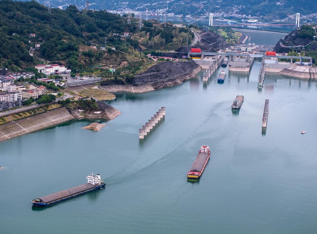 10月1日,船舶有序通过三峡双线五级船闸。(王罡 摄)
