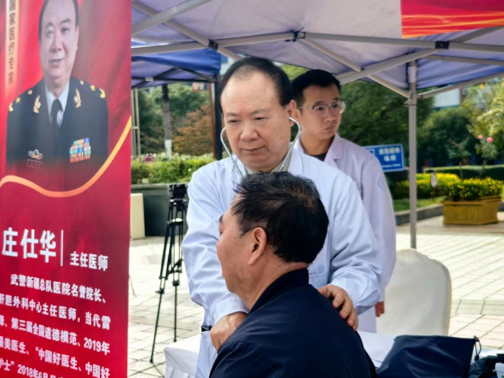 武警新疆总队医院名誉院长、肝胆外科中心主任医师庄仕华10月17日在义诊现场。(任从宁 摄)