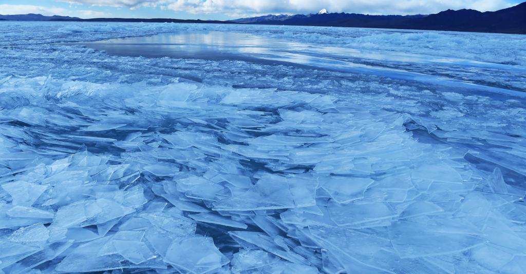 “圣湖”纳木错,湖面结冰如玉