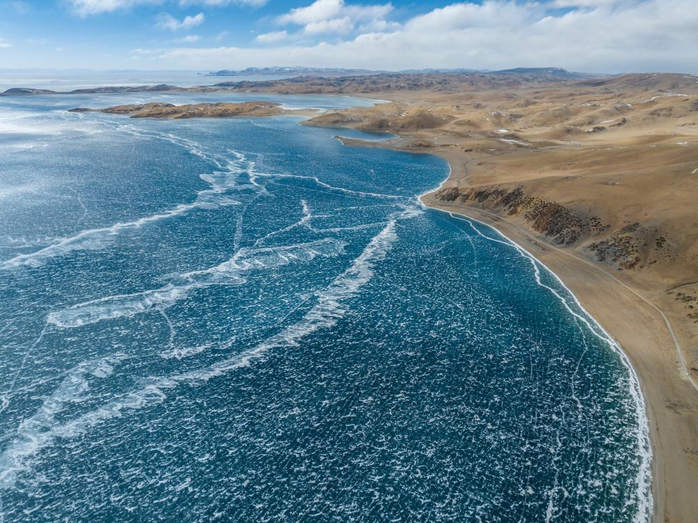 俯瞰玛旁雍错(2024年1月29日摄)。新华社发(旦增努布摄)