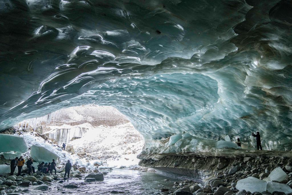 这是2023年10月27日在边坝县边坝镇普玉一村附近拍摄的贡嘎冰洞一景。新华社记者 孙非 摄